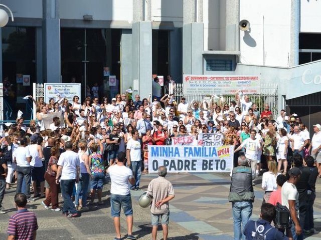 O grupo se reuniu em frente Catedral do Divino Espírito Santo, na praça Rui Barbosa, centro da cidade. No local os manifestantes ocuparam a escadaria do prédio onde rezaram e disseram frases de protesto como “abaixo a hipocrisia”. Alguns gritavam que “aconteça o que acontecer, estamos com padre Beto”