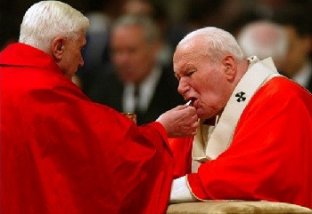 "A pessoa pode esperar de pé por símbolos e promessas, mas a realidade que é DEUS presente na EUCARISTIA, a pessoa DEVE RECEBER COM CARINHO E DE JOELHOS!"(Papa São Pio X)